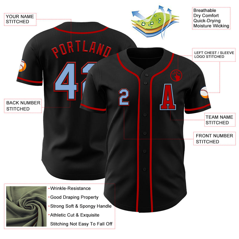 Custom Black Light Blue-Red Authentic Baseball Jersey