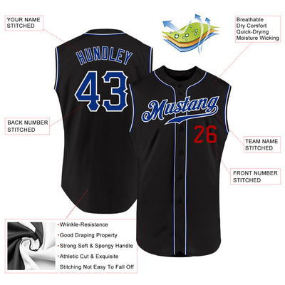 Custom Black Royal-Red Authentic Sleeveless Baseball Jersey