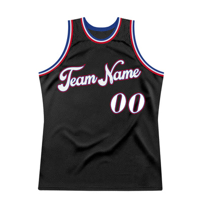 Custom Black White-Red Authentic Throwback Basketball Jersey