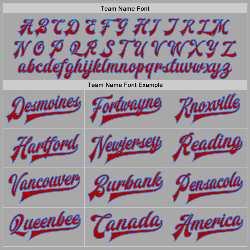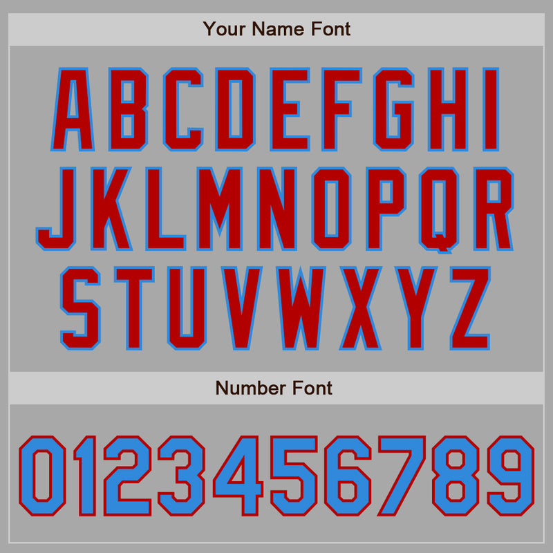 Custom Gray Powder Blue-Red Bomber Full-Snap Varsity Letterman Two Tone Jacket