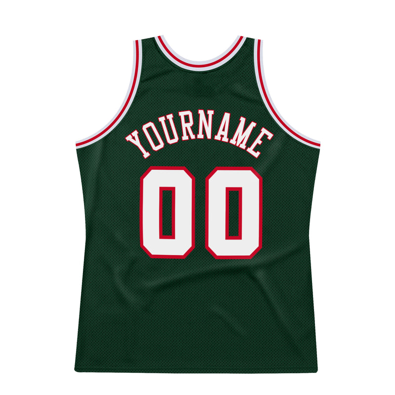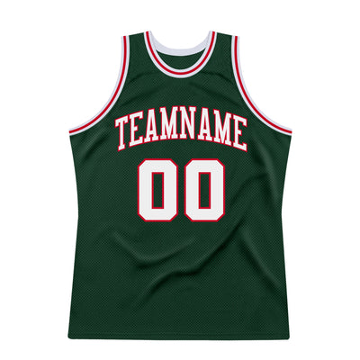 Custom Hunter Green White-Red Authentic Throwback Basketball Jersey