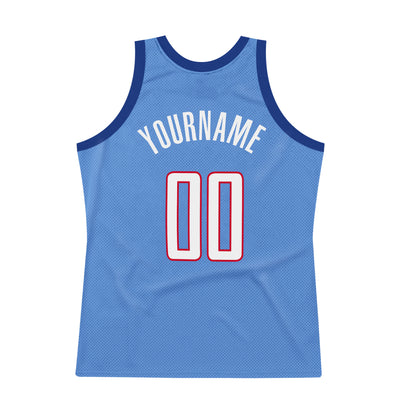 Custom Light Blue White-Red Authentic Throwback Basketball Jersey