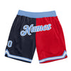 Custom Navy Light Blue-Red Authentic Throwback Split Fashion Basketball Shorts