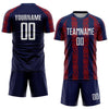Custom Navy White-Red Abstract Shape Sublimation Soccer Uniform Jersey