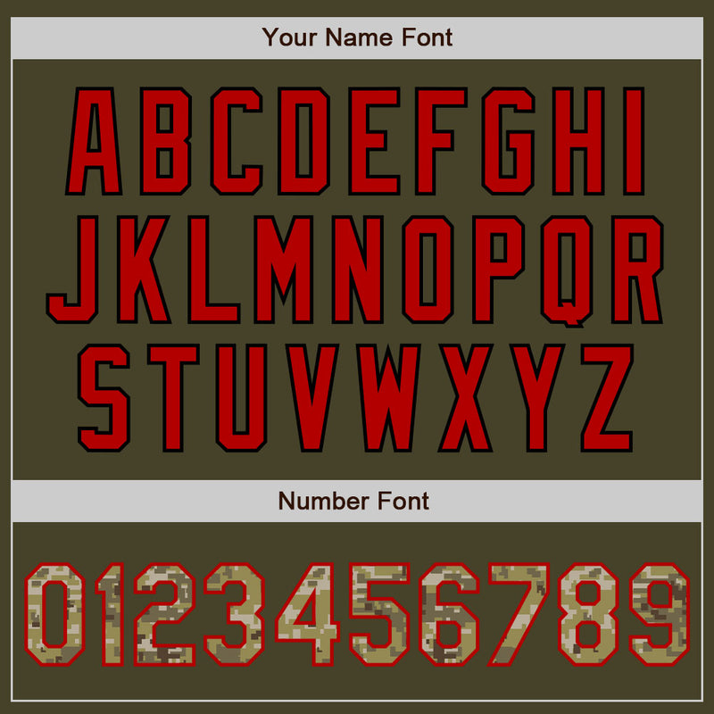 Custom Olive Camo Red-Black Bomber Varsity Letterman Salute To Service Zipper Jacket