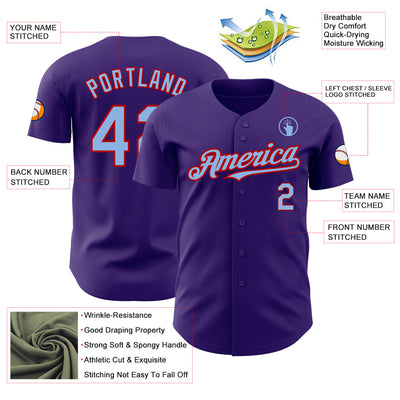 Custom Purple Light Blue-Red Authentic Baseball Jersey