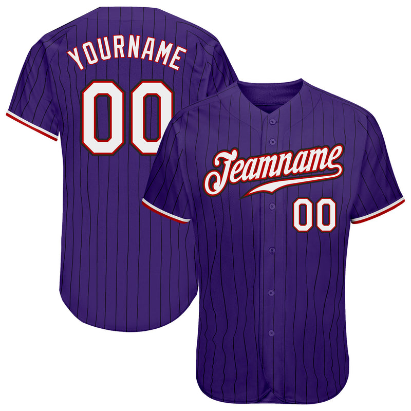 Custom Purple Black Pinstripe White-Red Authentic Baseball Jersey