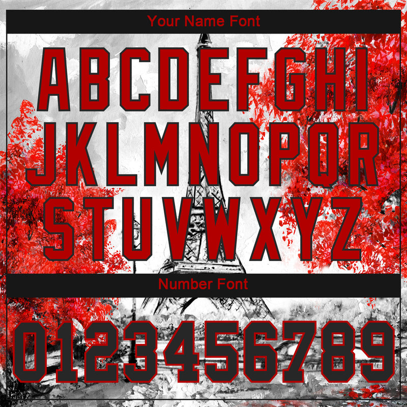 Custom White Black-Red 3D Pattern Design Eiffel Tower Authentic Baseball Jersey
