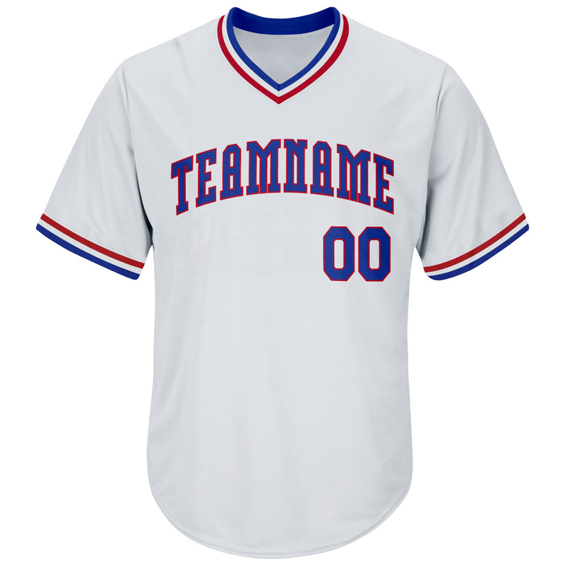 Custom White Royal-Red Authentic Throwback Rib-Knit Baseball Jersey Shirt