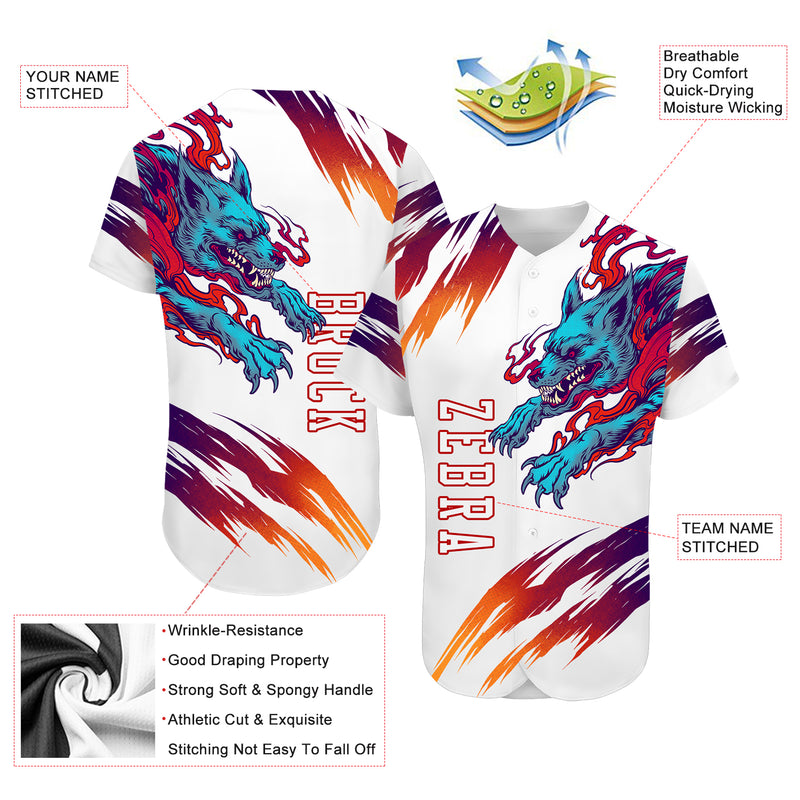 Custom White White-Red 3D Wolf Authentic Baseball Jersey