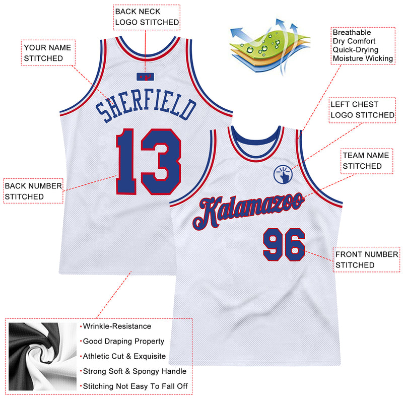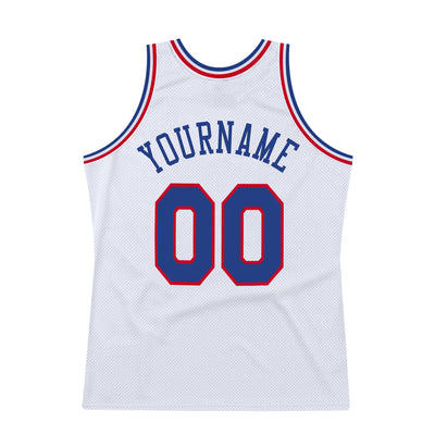Custom White Royal-Red Authentic Throwback Basketball Jersey