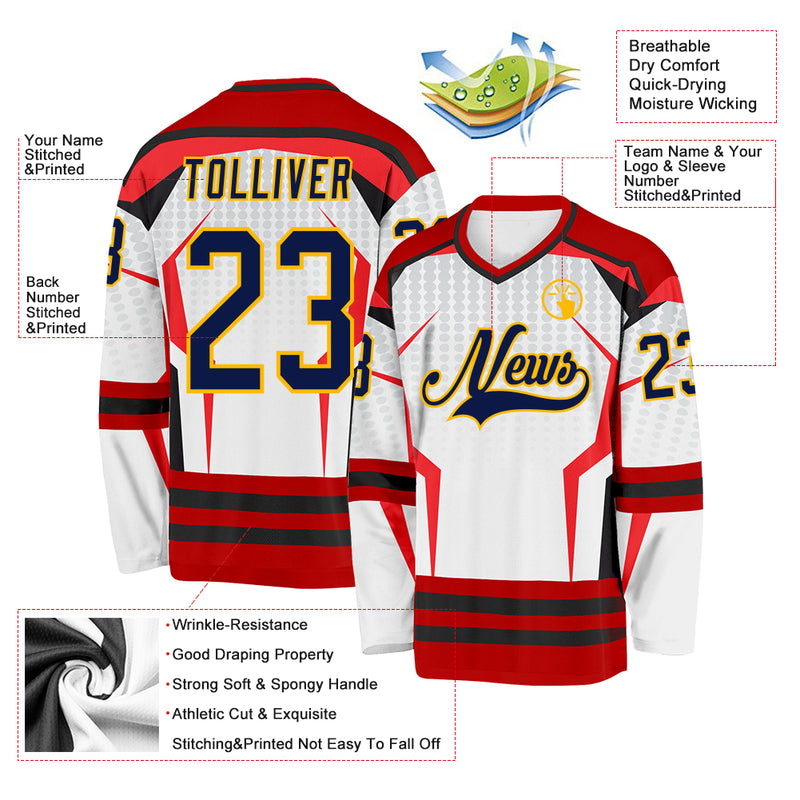 With our personalized hockey jerseys, you have the freedom to choose the colors, fonts, and styles that match your team's identity or personal taste. Every detail is carefully crafted, from the stitching to the logo placement, to deliver a professional and eye-catching look.