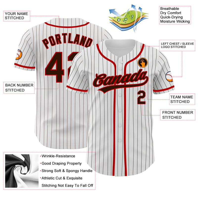 Custom White Brown Pinstripe Brown-Red Authentic Baseball Jersey