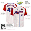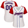 Custom White Red Pinstripe Royal-Red Authentic Raglan Sleeves Baseball Jersey