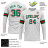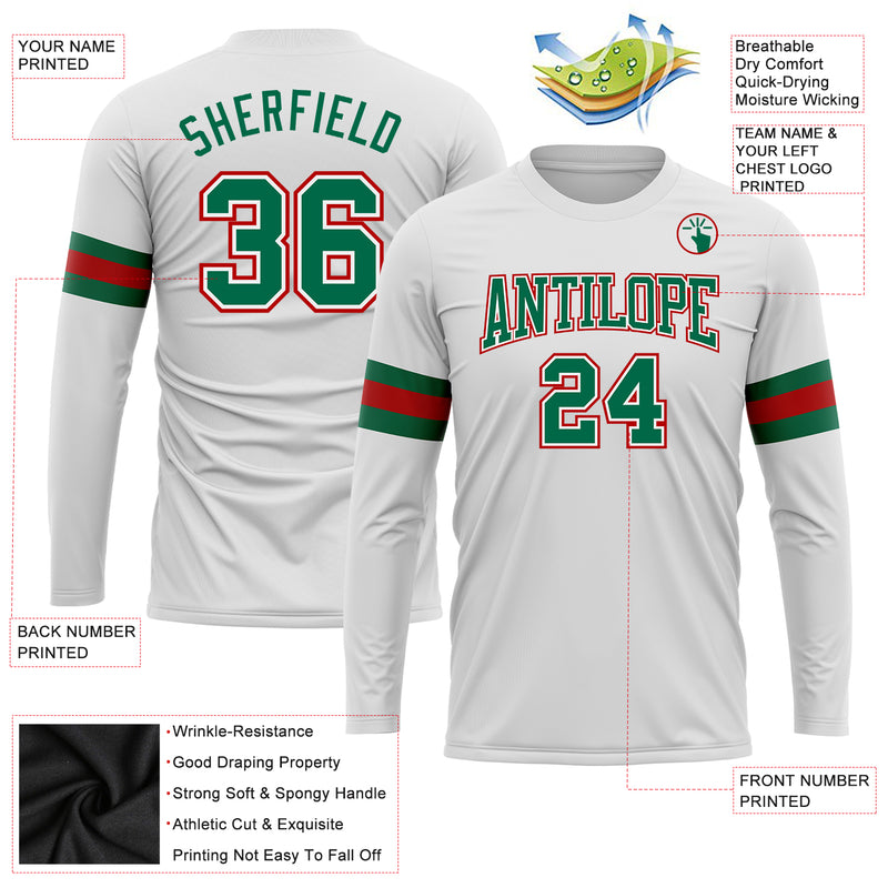 Custom White Kelly Green-Red Long Sleeve Performance T-Shirt