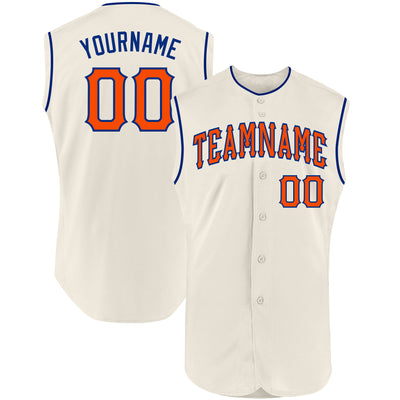 Custom Cream Orange-Royal Authentic Sleeveless Baseball Jersey