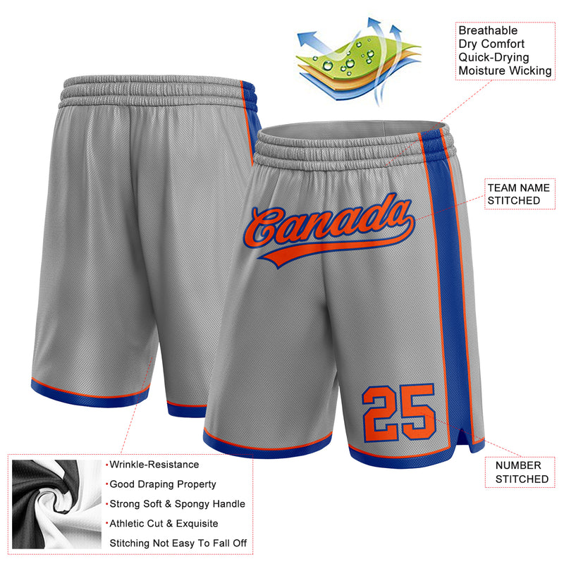 Custom Gray Orange-Royal Authentic Basketball Shorts