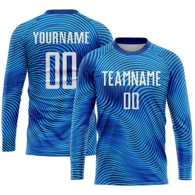 Custom Light Blue White-Royal Sublimation Soccer Uniform Jersey