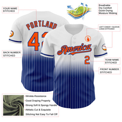 Custom White Pinstripe Orange-Royal Authentic Fade Fashion Baseball Jersey