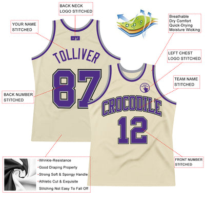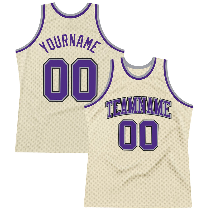 Custom Cream Purple-Gray Authentic Throwback Basketball Jersey