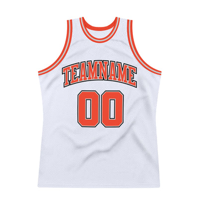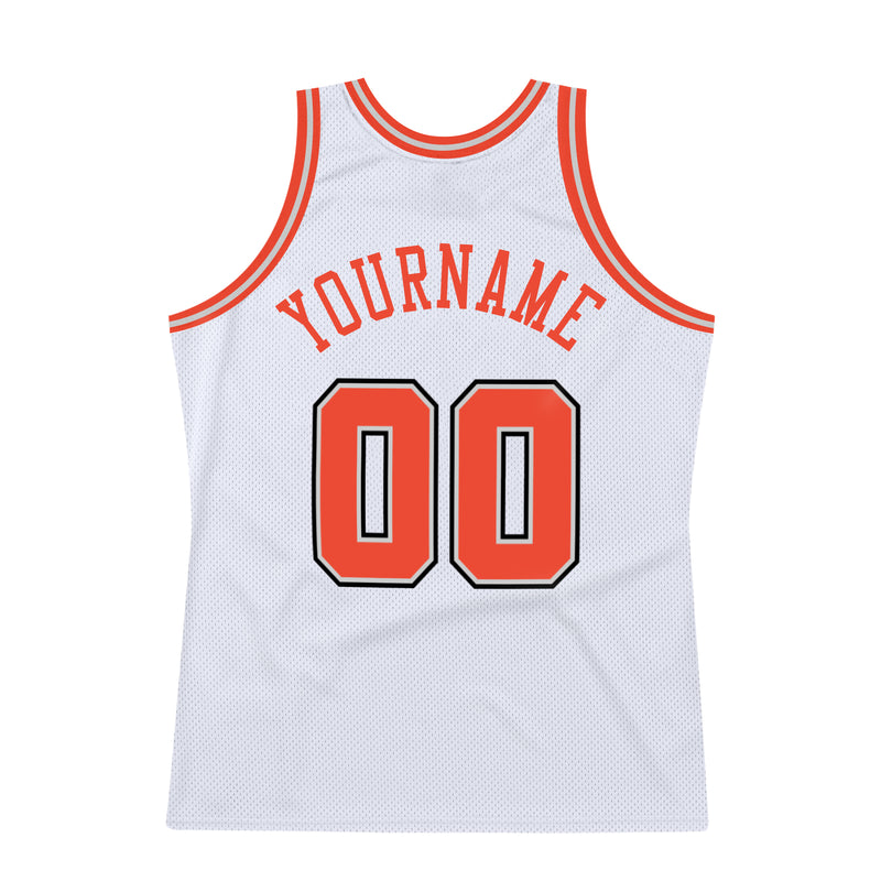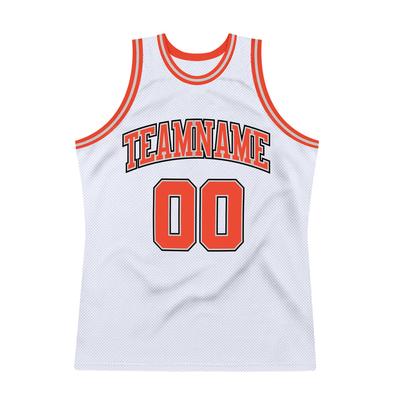 Custom White Orange-Gray Authentic Throwback Basketball Jersey