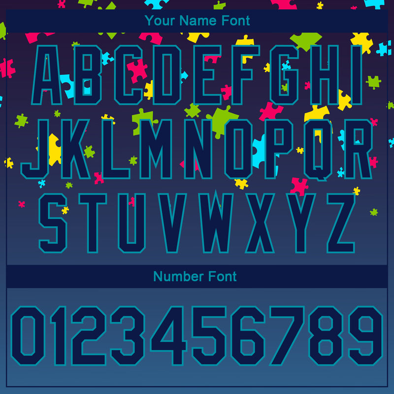 Custom Black Navy-Teal 3D Pattern Design Autism Awareness Puzzle Pieces Authentic Basketball Jersey