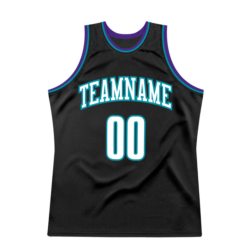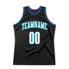 Custom Black White-Teal Authentic Throwback Basketball Jersey