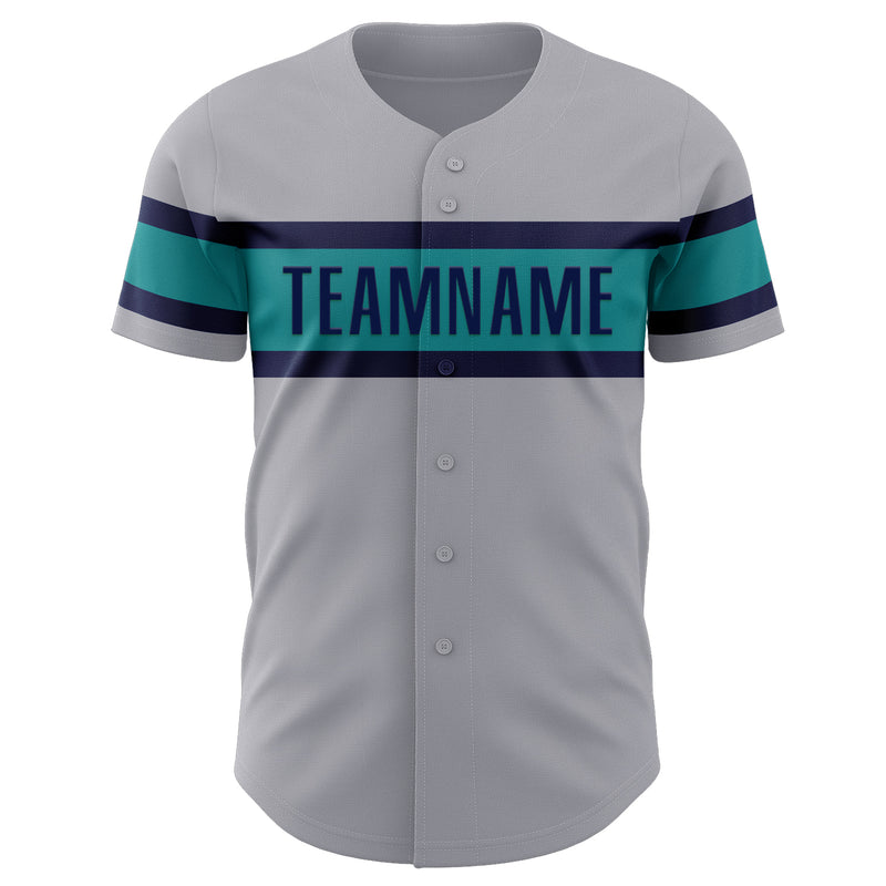 Custom Gray Navy-Teal Authentic Baseball Jersey