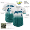 Custom White Pinstripe Navy-Teal Authentic Fade Fashion Baseball Jersey