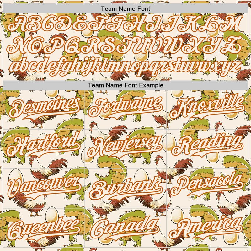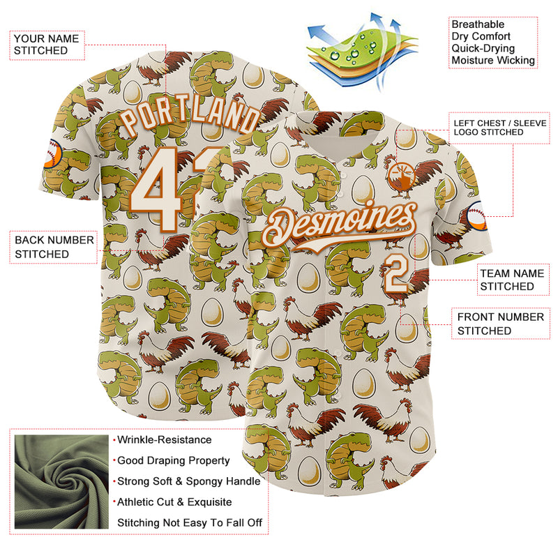 Custom Cream Cream-Texas Orange 3D Tobe Fonseca Egg Chicken and Dinossaur Authentic Baseball Jersey