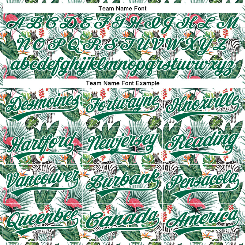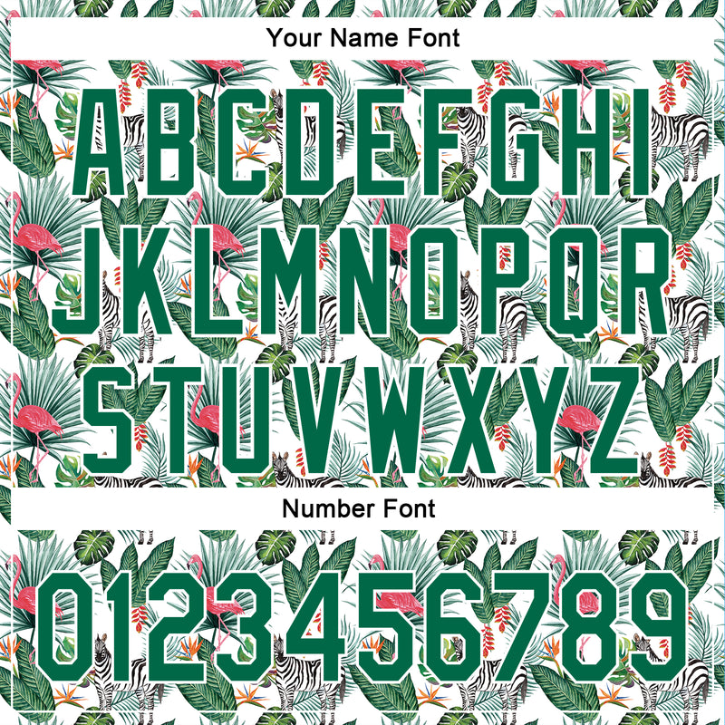 Custom White Kelly Green 3D Pattern Design Animal Zebra Flamingo And Hawaii Palm Leaves Authentic Baseball Jersey