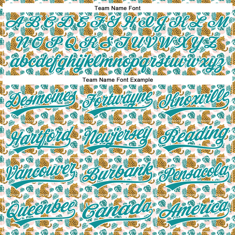 Custom White Teal 3D Pattern Design Animal Leopard Authentic Baseball Jersey