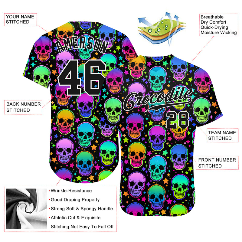 Custom 3D Pattern Bright Multicolored Halloween Skulls Authentic Baseball Jersey