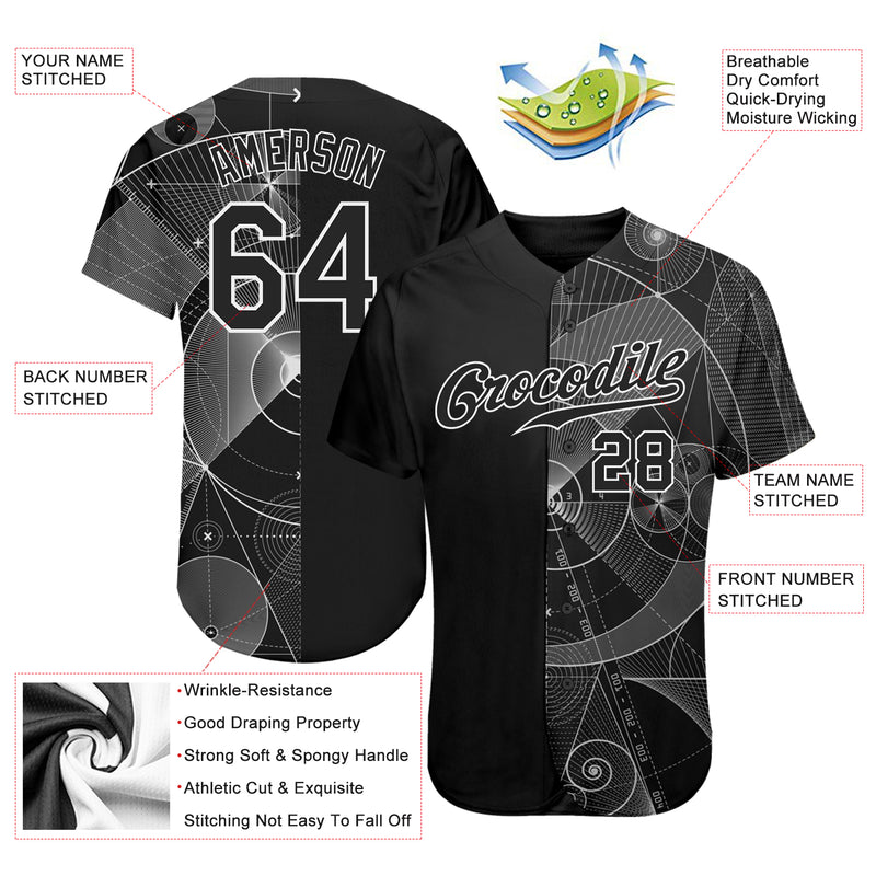 Custom Black Black-White 3D Pattern Design Geometry Authentic Baseball Jersey