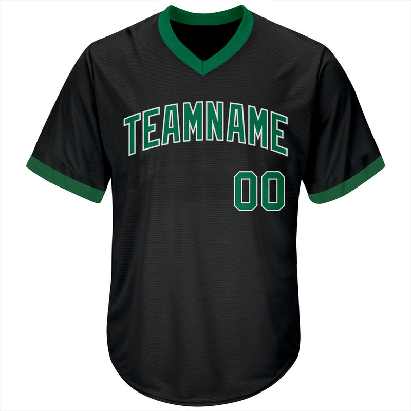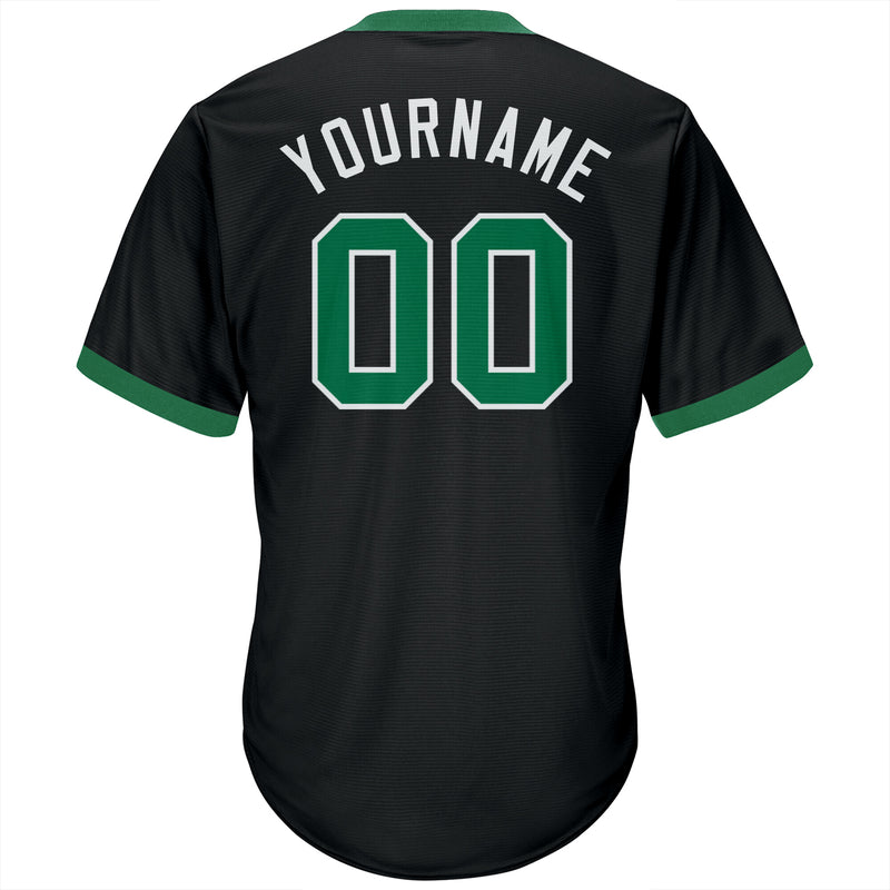 Custom Black Kelly Green-White Authentic Throwback Rib-Knit Baseball Jersey Shirt