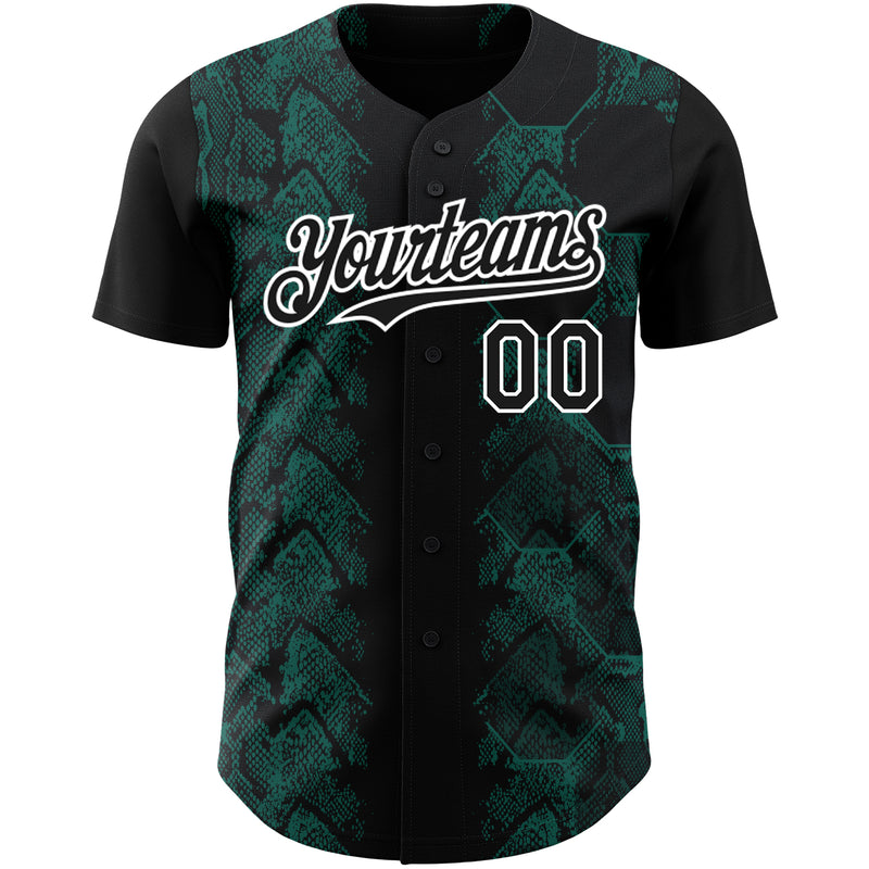 Custom Black Midnight Green-White 3D Pattern Design Animal Snake Authentic Baseball Jersey