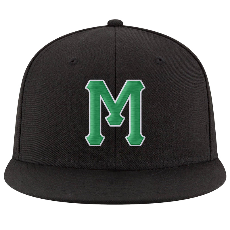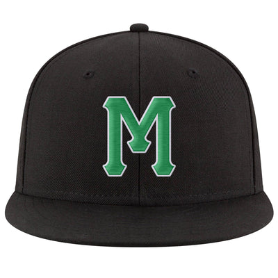 Custom Black Kelly Green-White Stitched Adjustable Snapback Hat