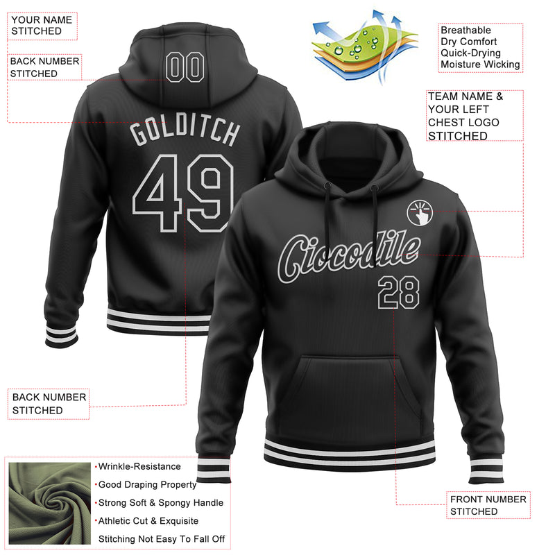 Custom Stitched Black White Sports Pullover Sweatshirt Hoodie