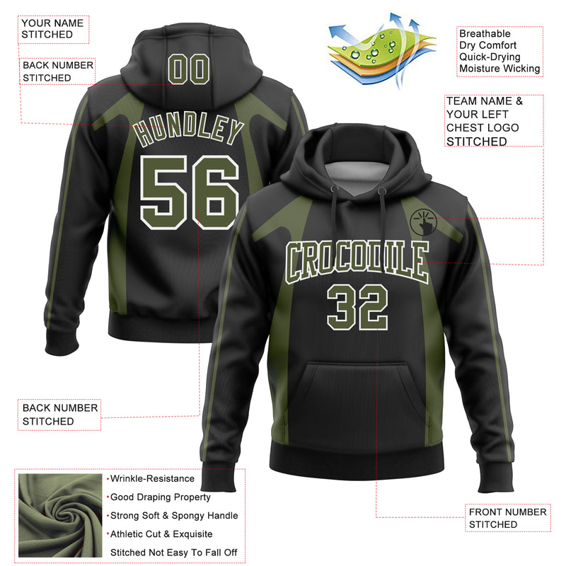Custom Stitched Black Olive-White 3D Pattern Design Segmentation Patchwork Stripe Sports Pullover Sweatshirt Hoodie