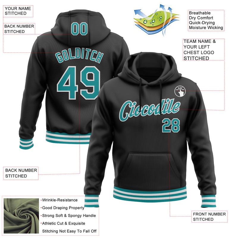 Custom Stitched Black Teal-White Sports Pullover Sweatshirt Hoodie