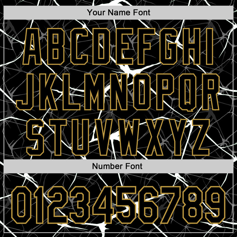 Custom Black White-Old Gold Abstract Network 3D Pattern Design Bomber Full-Snap Varsity Letterman Hoodie Jacket
