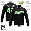 Custom Black Pea Green-White Bomber Full-Snap Varsity Letterman Jacket