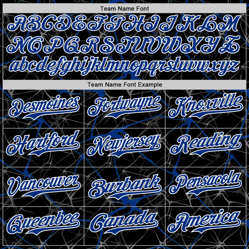 Custom Black Royal-White Abstract Network 3D Pattern Design Bomber Full-Snap Varsity Letterman Hoodie Jacket