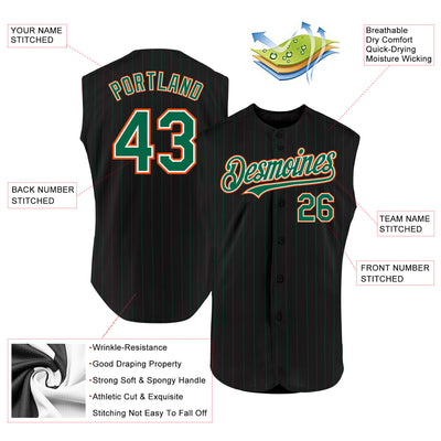 Custom Black Kelly Green Pinstripe White-Orange Authentic Sleeveless Baseball Jersey