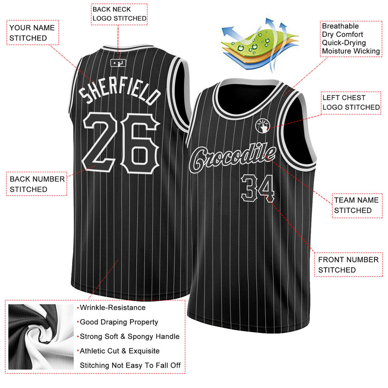 Custom Black White Pinstripe Black-White Authentic Basketball Jersey