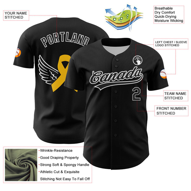 Custom Black White-Yellow 3D Childhood Cancer Gold Ribbon Authentic Baseball Jersey