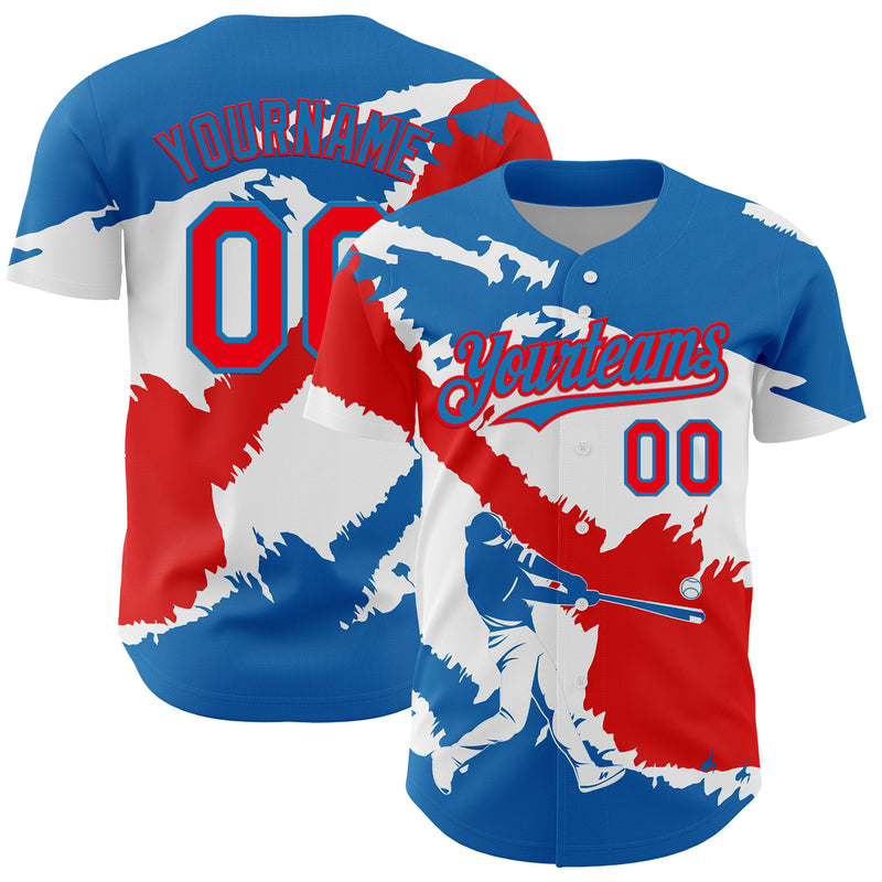 Custom Blue Fire Red-White 3D Panama Panamanian Flag Authentic Baseball Jersey