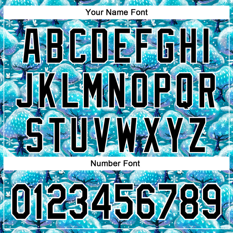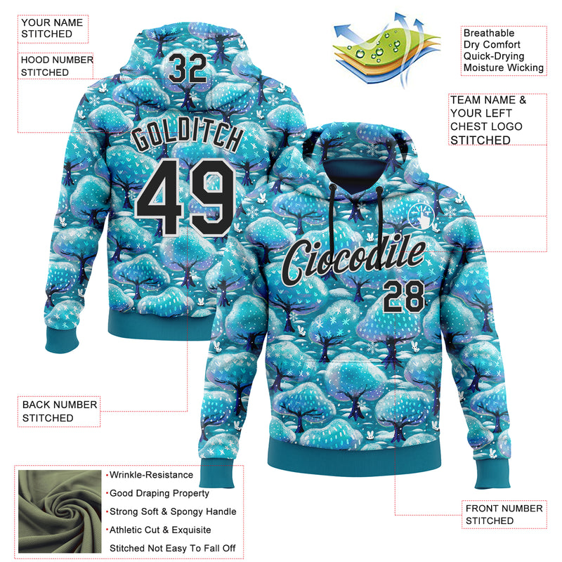 Custom Stitched Blue Black-White 3D Emi Bee Winter Trees And Bunnies Sports Pullover Sweatshirt Hoodie