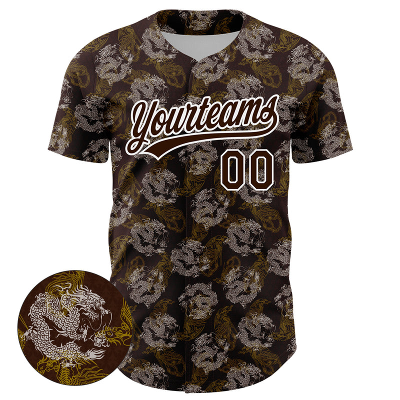 Custom Brown White 3D Pattern Design Animal Loongfeng Authentic Baseball Jersey