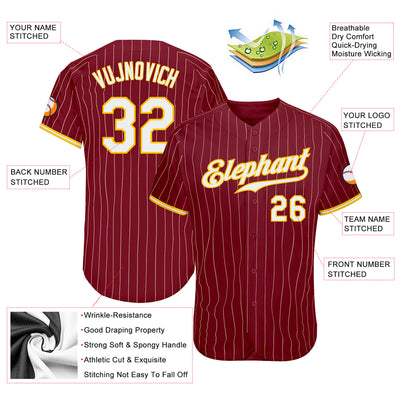 Custom Crimson Cream Pinstripe Gold-White Authentic Baseball Jersey